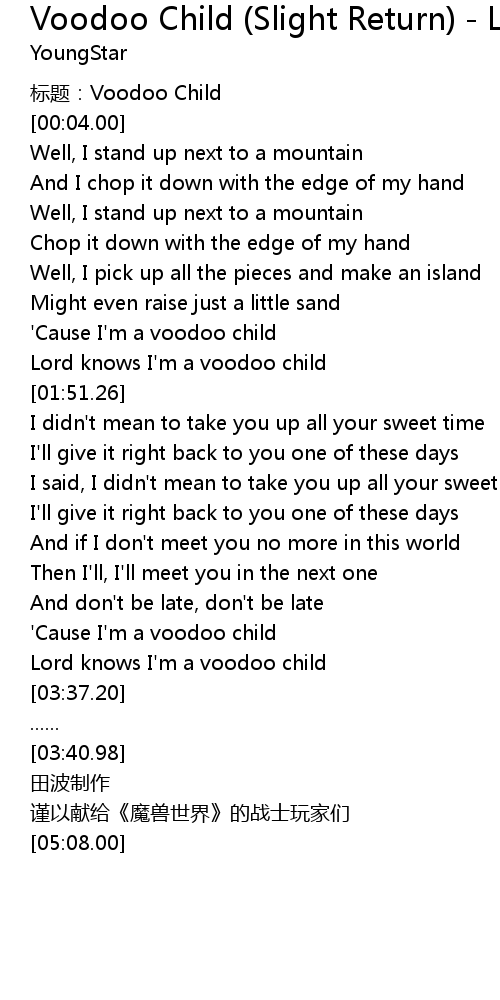 | [01:42.78] | ' Cause I' m a voodoo child |