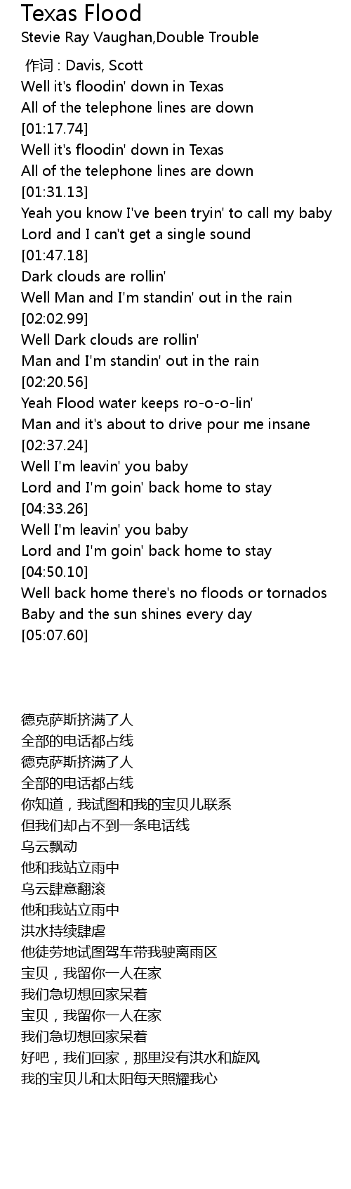 | [01:20.57] | Well it's floodin' down in Texas |