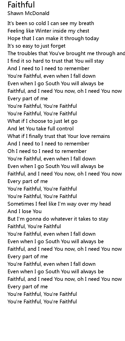 Faithful, and I need You now, oh I need You now |