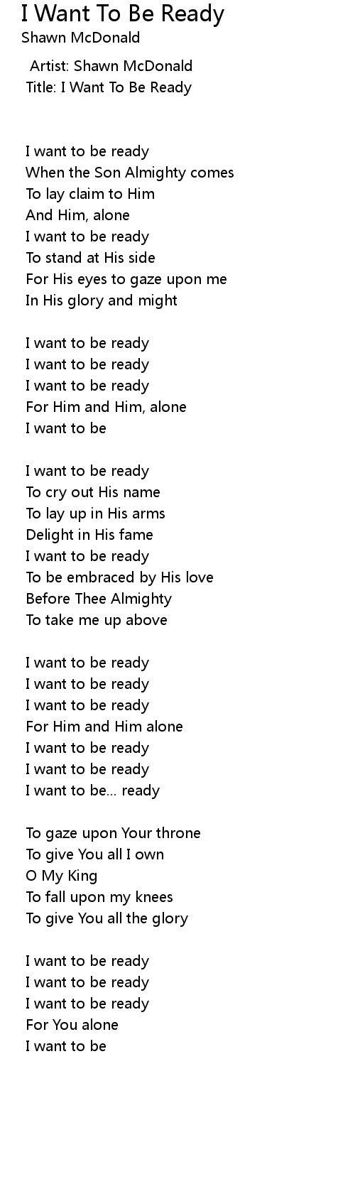 Title: I Want To Be Ready |