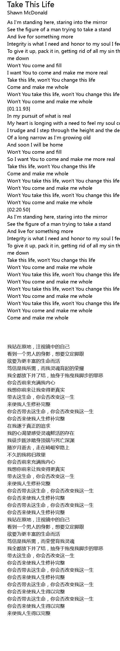 Won't You take this life, won't You change this life |