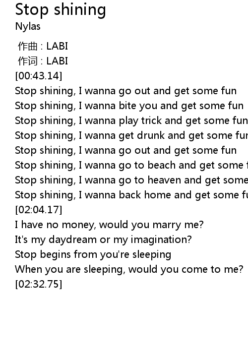 | [01:53.98] | Stop shining, I wanna back home and get some fun |
