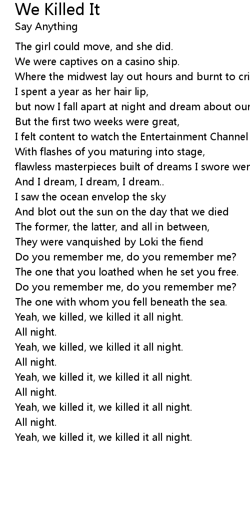 Yeah, we killed, we killed it all night. |