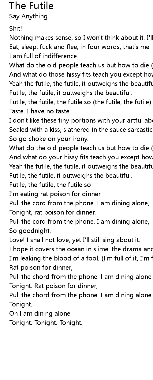 I'm leaking the blood of a fool. (I'm full of it, I'm full of it, I'm full.)