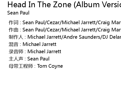 | [00:00.000] | zuo qu : Sean Paul Cezar Michael Jarrett Craig Marsh Delano Thomas |