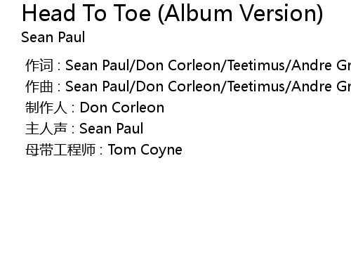 | [00:00.000] | 作词 : Sean Paul/Don Corleon/Teetimus/Andre Gray |