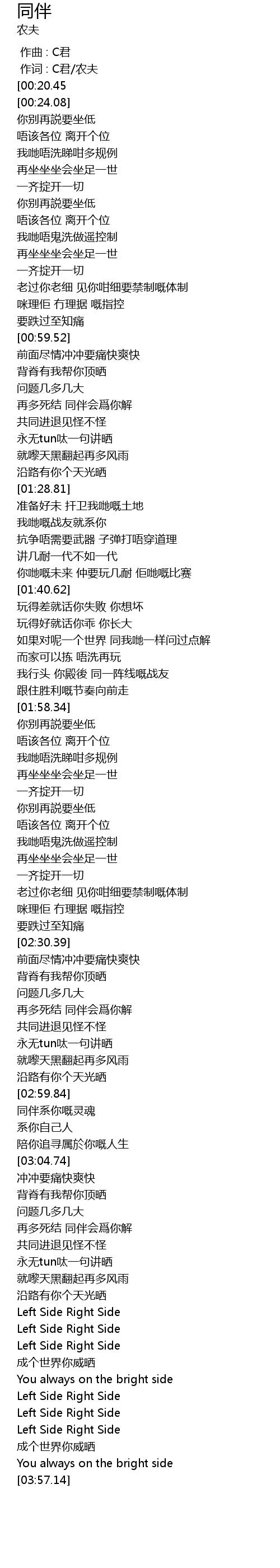 | [02:23.38] | 老过你老细 见你咁细要禁制嘅体制 |