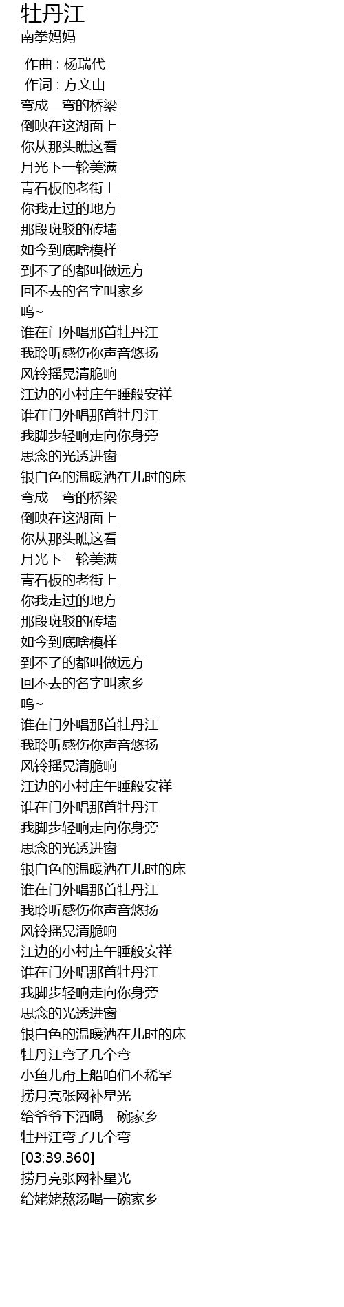 | [03:36.380] | 牡丹江弯了几个弯 |