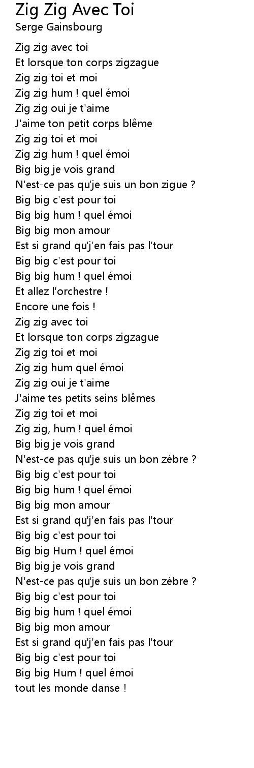 | [01:58.000] | Zig zig, hum ! quel émoi |