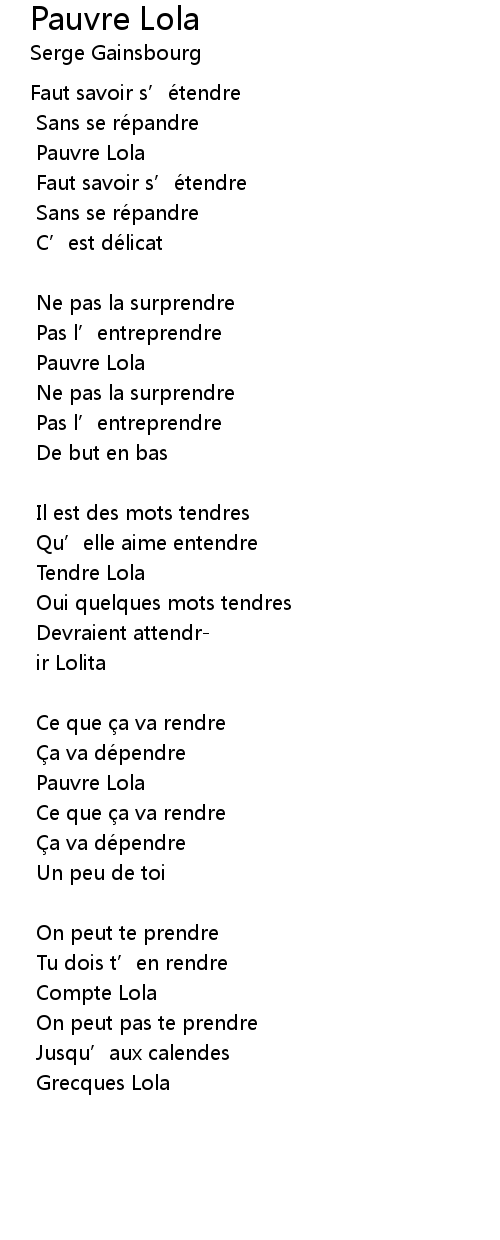| Song | Pauvre Lola |