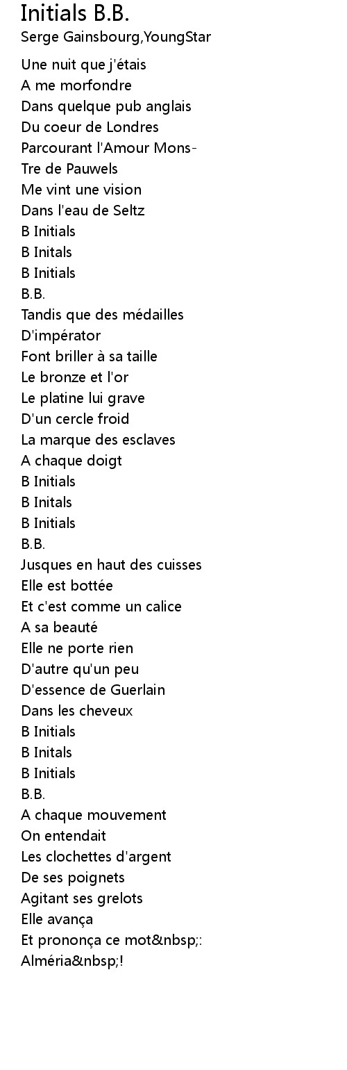 | Song | Initials B.B. |