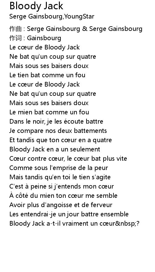 | Bloody Jack atil vraiment un c ur nbsp? |