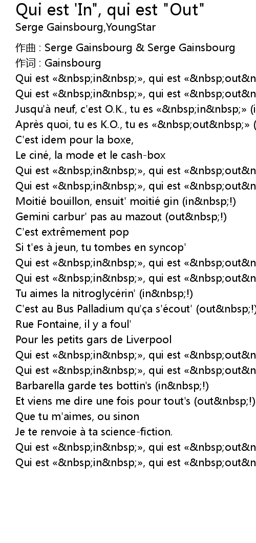 | Qui est nbsp in nbsp, qui est nbsp out nbsp nbsp? |
