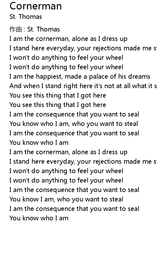 | I am the cornerman, alone as I dress up | |