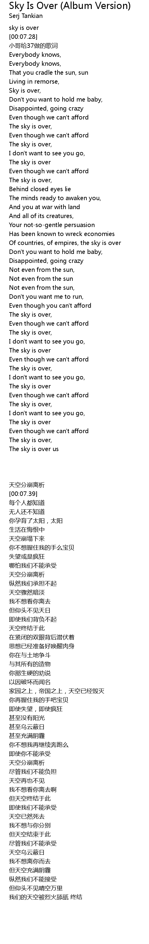 | [00:57.43] | The sky is over |