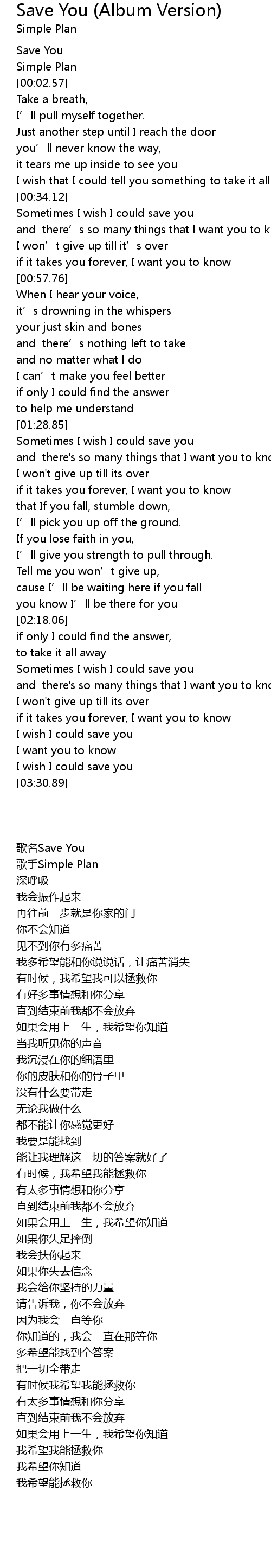 | [00:34.53] | Sometimes I wish I could save you |