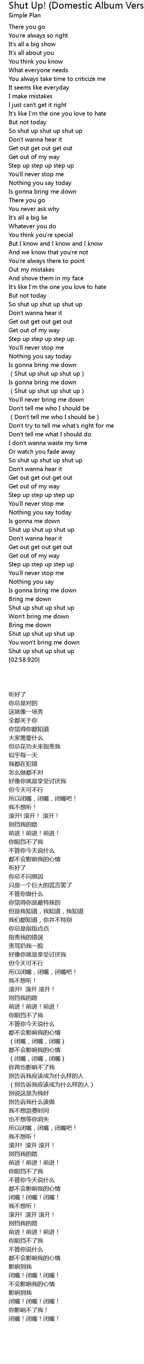 | [01:45.70] | Shut up shut up shut up |