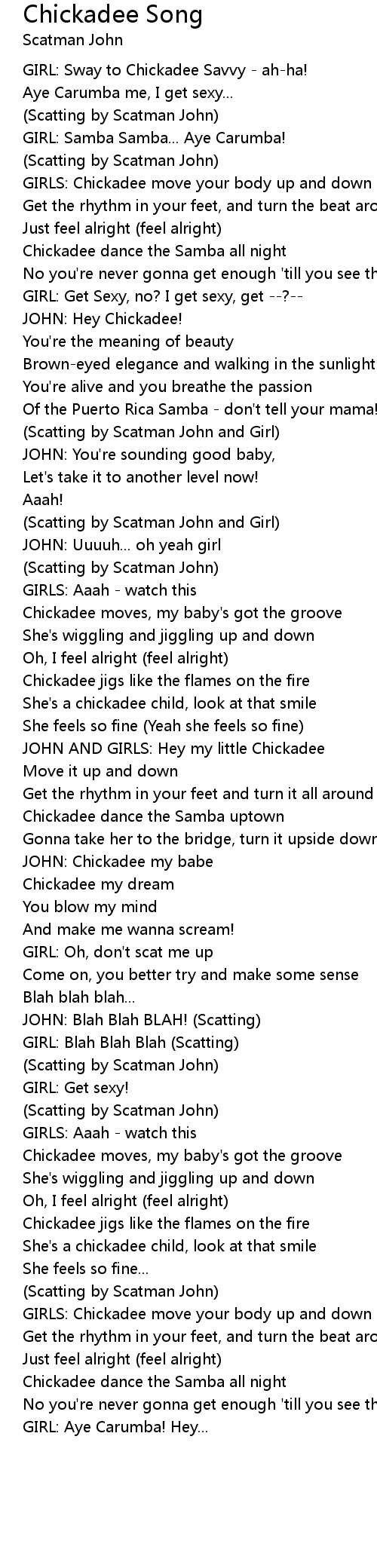 Chickadee dance the Samba all night |