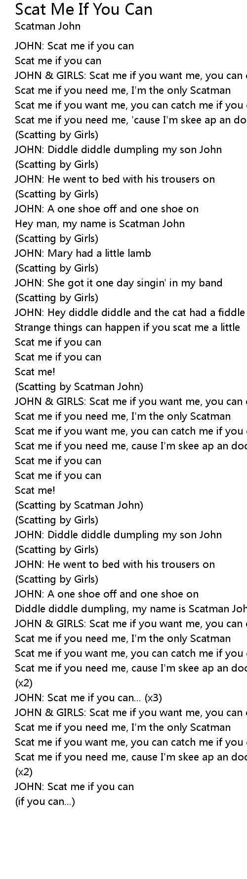 Scat me if you need me, cause I'm skee ap an doo dah |