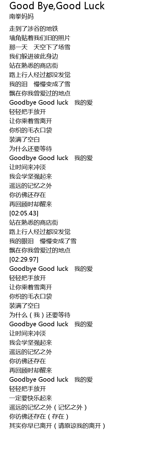| [02:31.95] | Goodbye Good luck 我的爱 |