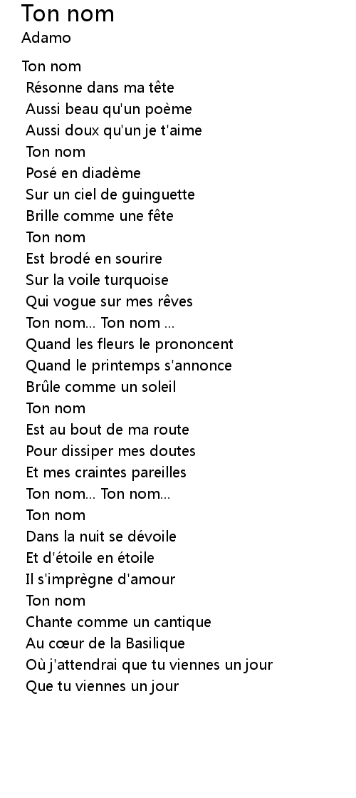 | Song | Ton nom |