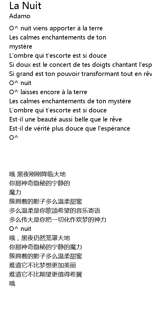 | [00:02.00] | O^ nuit viens apporter à la terre |