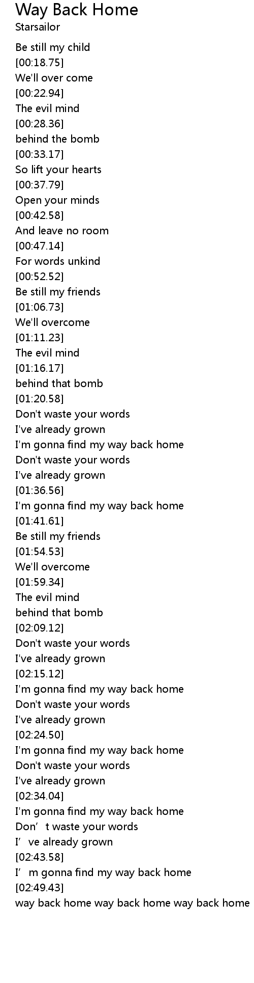 | [02:52.11] | way back home way back home way back home |