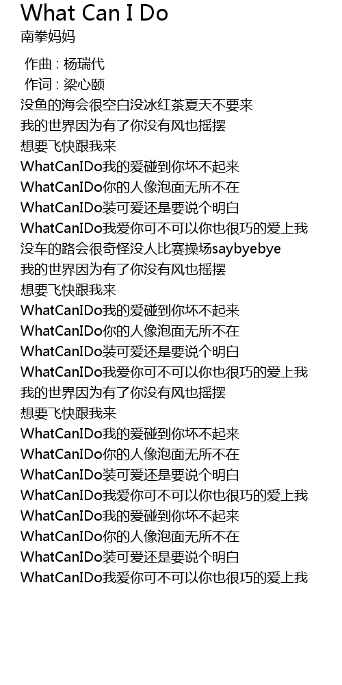 | [00:49.99] | WhatCanIDo zhuāng kě ài hái shì yào shuō gè míng bái |