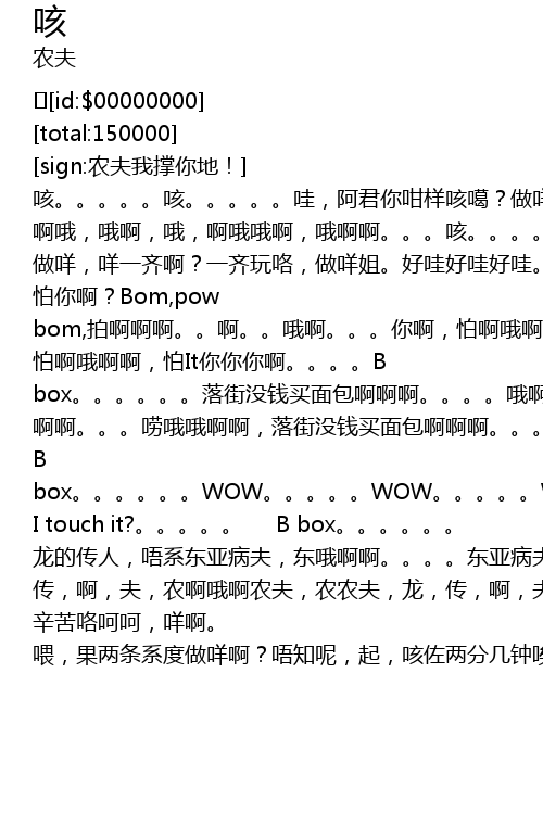 | [02:06.617] | 传,啊,夫,农啊哦啊农夫,农农夫,龙,传,啊,夫,农啊哦啊农夫,农农夫。咳。。。。。咳。。。。喂,点啊你?好 |