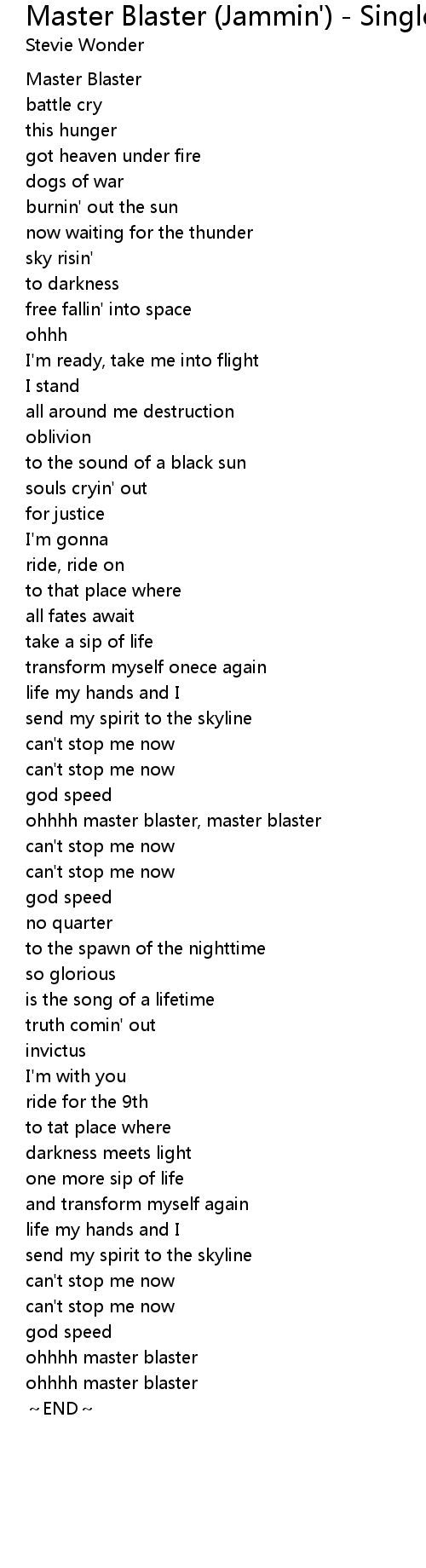 | Song | Master Blaster (Jammin') - Single Version |