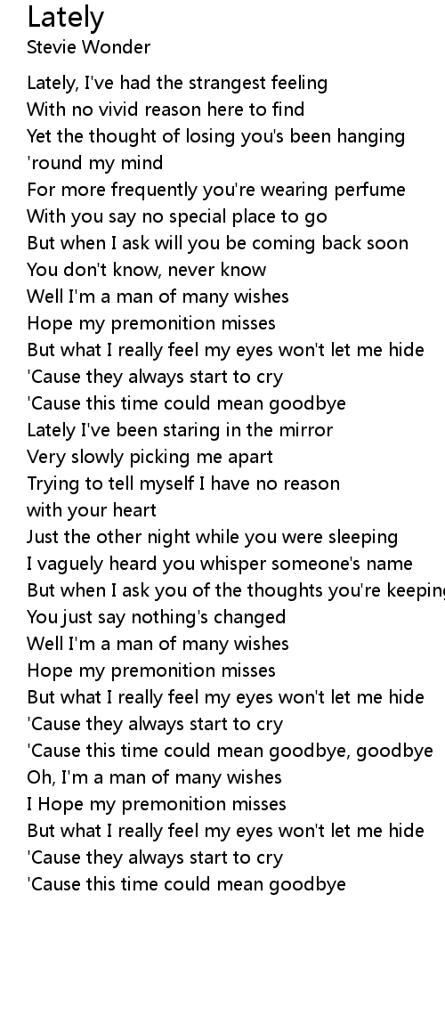 Lately, I've had the strangest feeling |