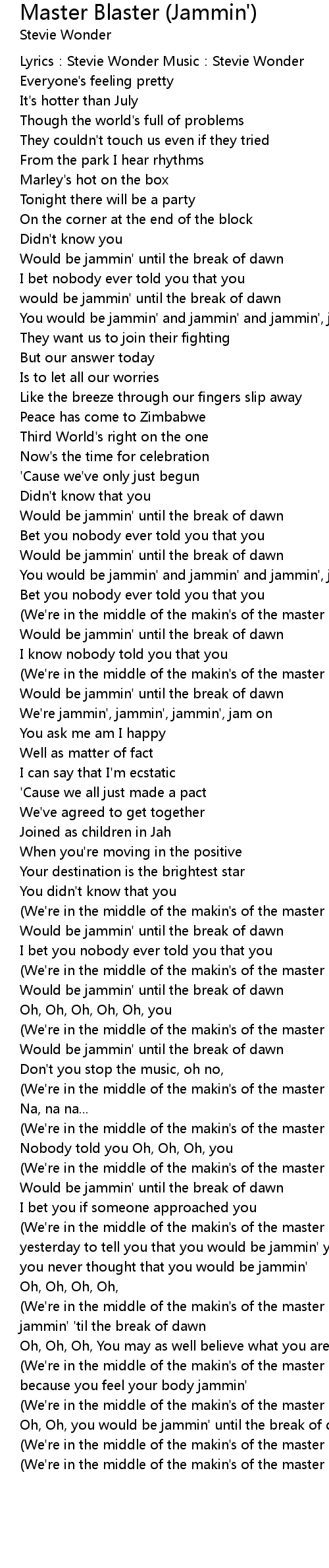 | (We're in the middle of the makin's of the master blaster jammin') | |