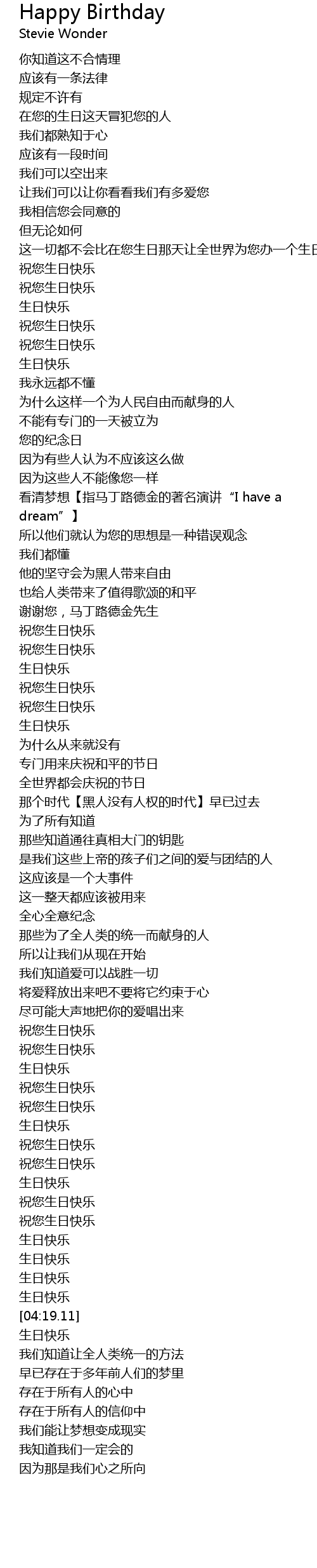 | [04:11.708] | 生日快乐 |