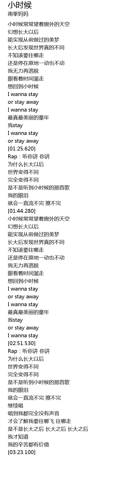 | [03:15.940] | 是不是长大之后 长大之后 长大之后 |