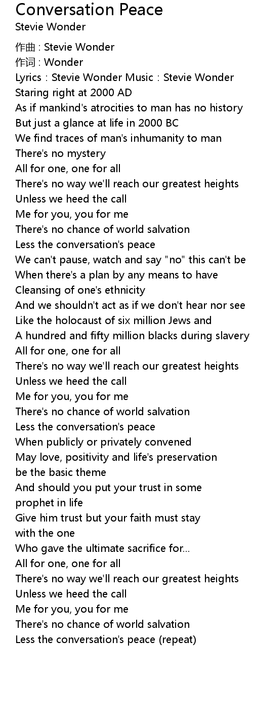 | Less the conversation' s peace repeat |