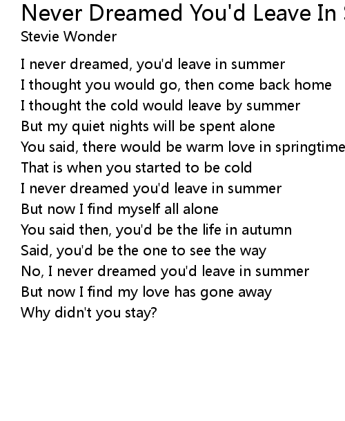 | I never dreamed, you'd leave in summer | |