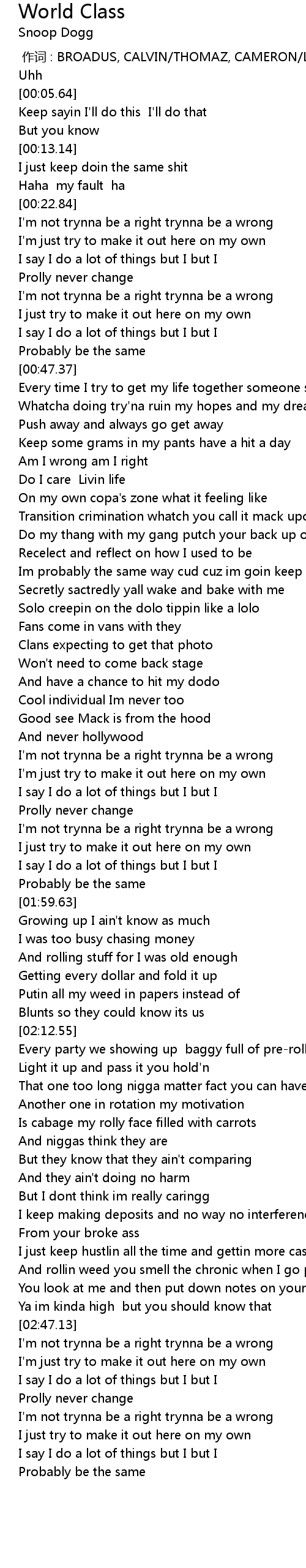 | [02:59.58] | I' m not trynna be a right trynna be a wrong |