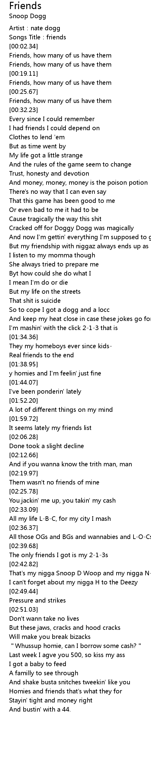 | [02:56.84] | "Whussup homie, can I borrow some cash?" |