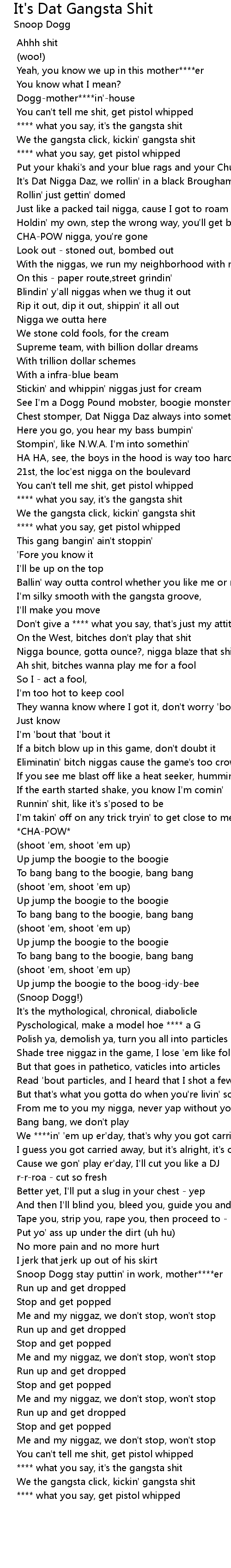 Snoop Dogg stay puttin' in work, mother****er |