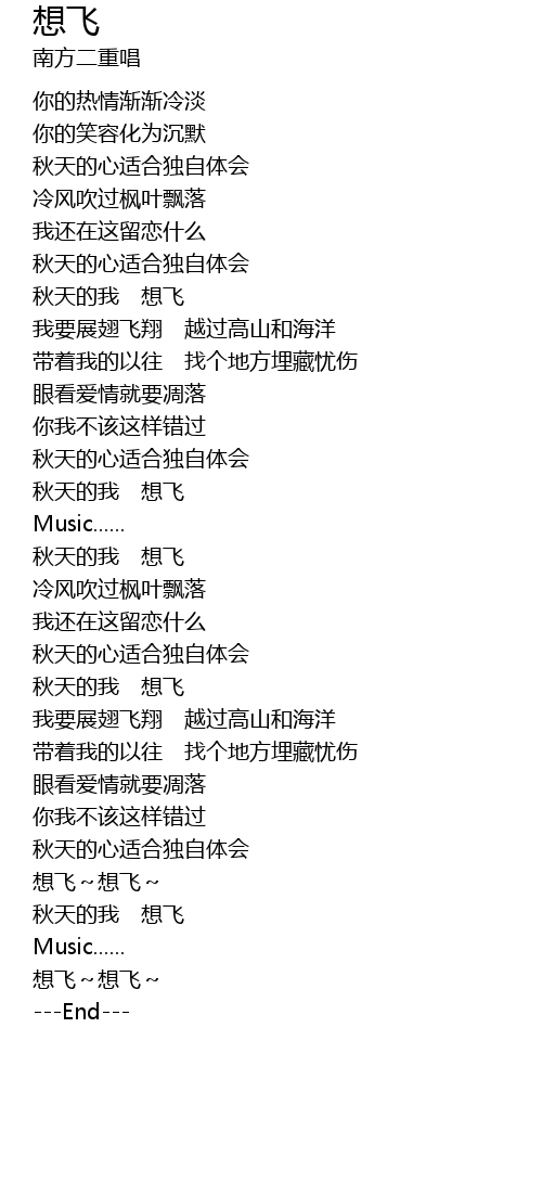 | [00:37.99] | qiū tiān de wǒ xiǎng fēi |
