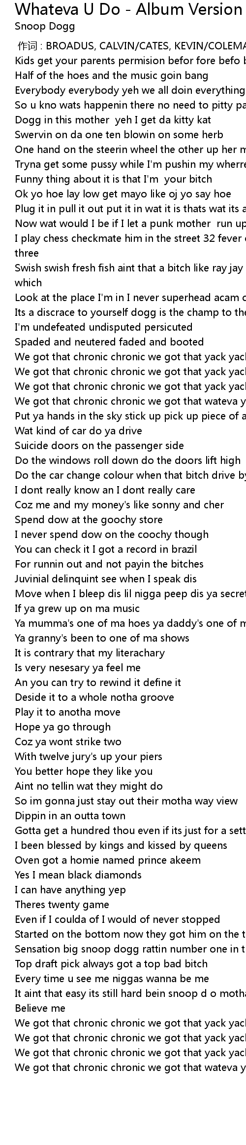 | [03:21.11] | We got that chronic chronic we got that wateva you do |