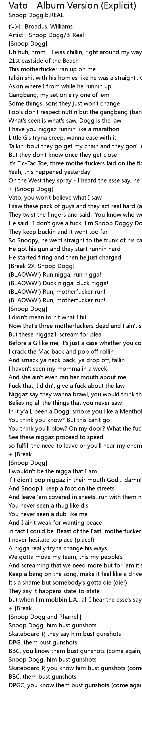 | He said, 'I don't give a fuck, I'm Snoop Doggy Dogg' (uh huh!) | |