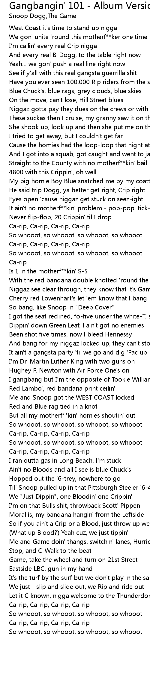 I'm callin' every real Crip nigga |