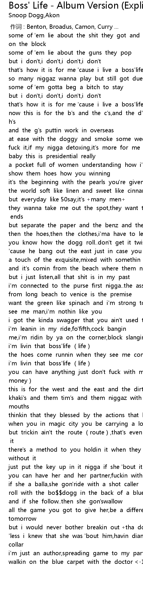 | [01:34.41] | i'm livin that boss'life (life) |