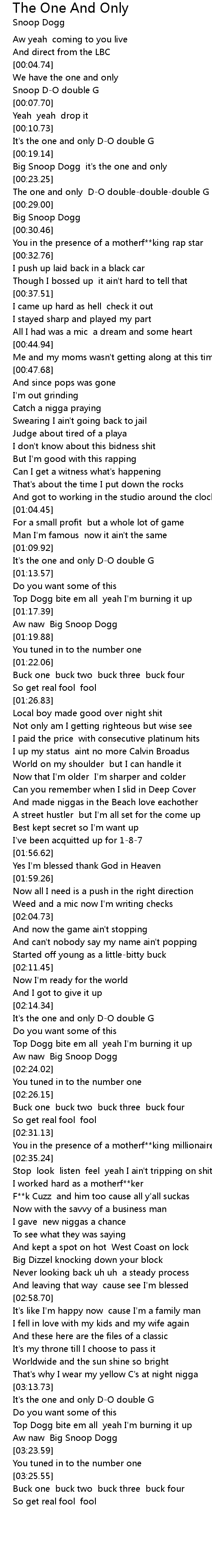 Big Snoop Dogg it's the one and only |