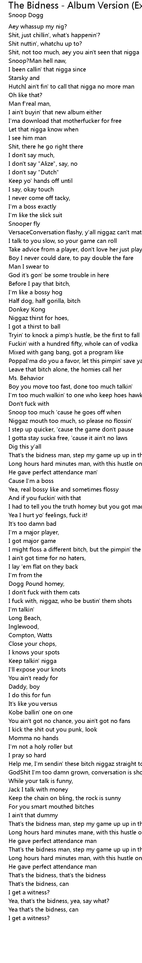 That's the bidness, that's the bidness |