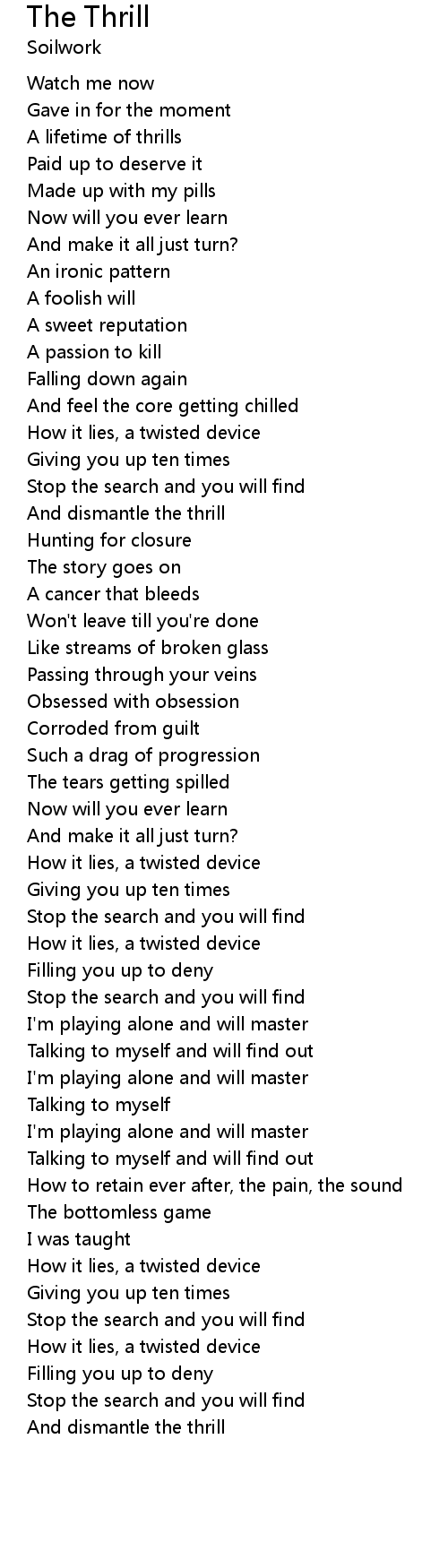 And dismantle the thrill |