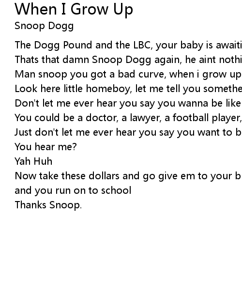 Man snoop you got a bad curve, when i grow up i wanna be just like you |
