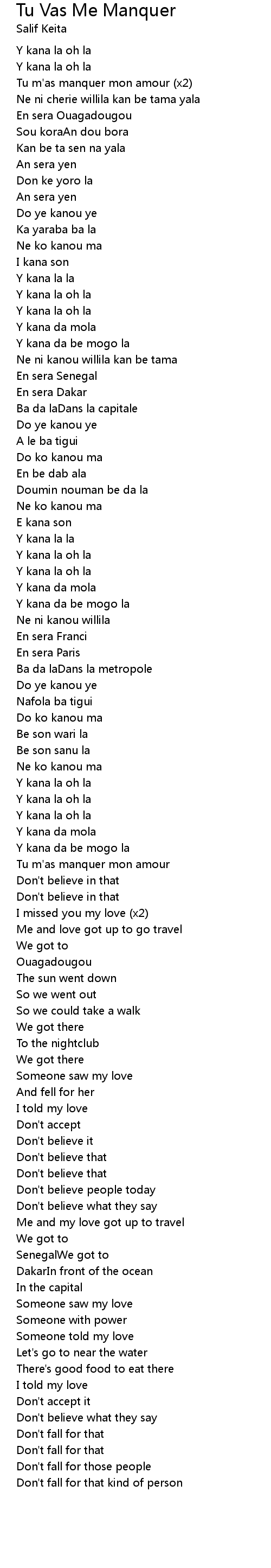 Tu m'as manquer mon amour (x2) |