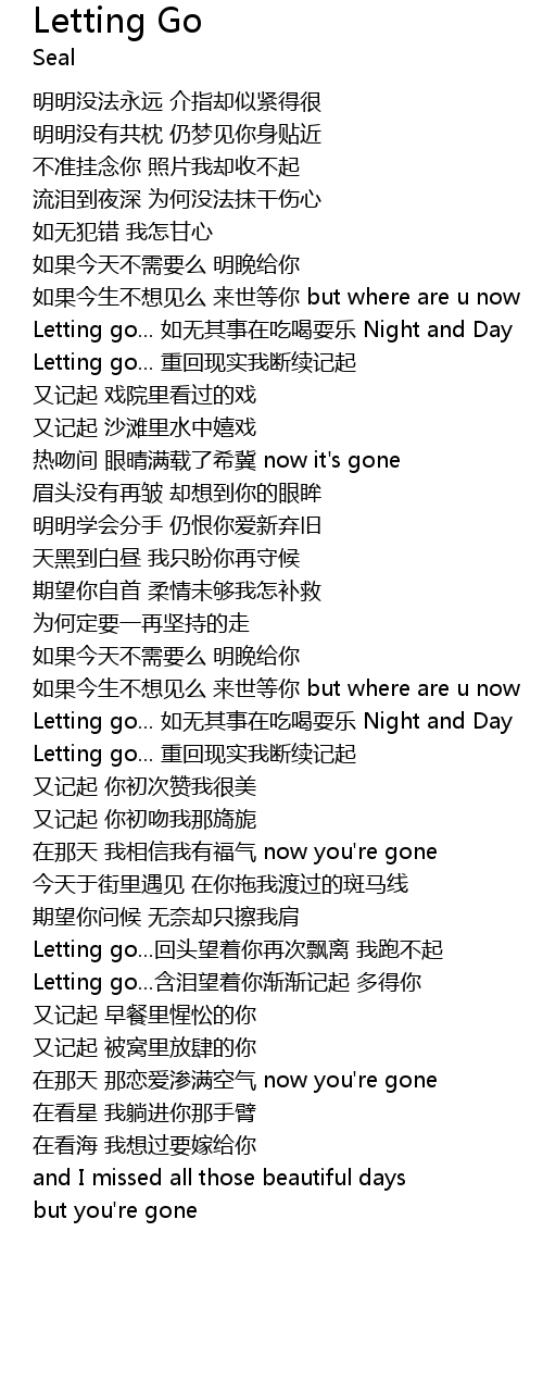 | [03:40.02] | Letting go...含泪望着你渐渐记起 多得你 |